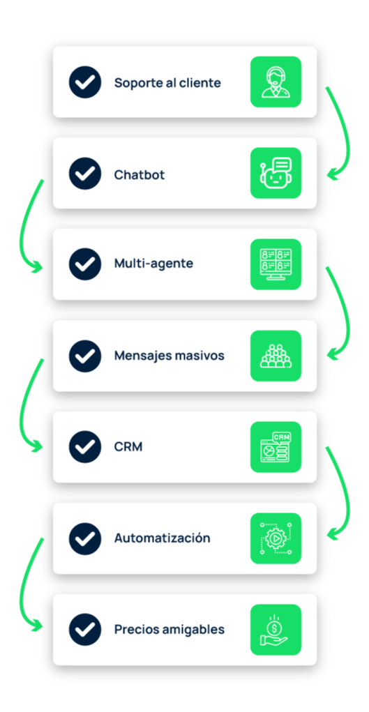 Wasapi se construye sobre esta API, llevando las cosas a otro nivel. Con Wasapi, las empresas pueden enviar altos volúmenes de mensajes sin bloqueos, aprovechar la inteligencia artificial para comunicaciones más inteligentes, crear automatizaciones complejas, integraciones con otros sistemas, y ¡mucho más!